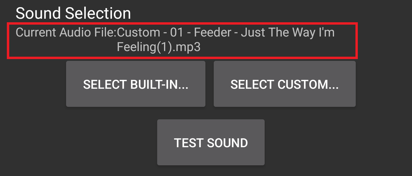 Once you have selected the sound, the file will be displayed next to “Current Audio File”: