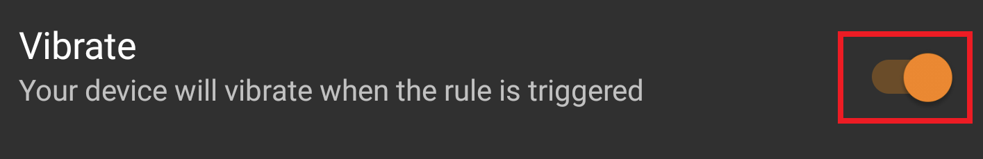 If you want the rule to make your device vibrate, turn on the toggle for this setting.