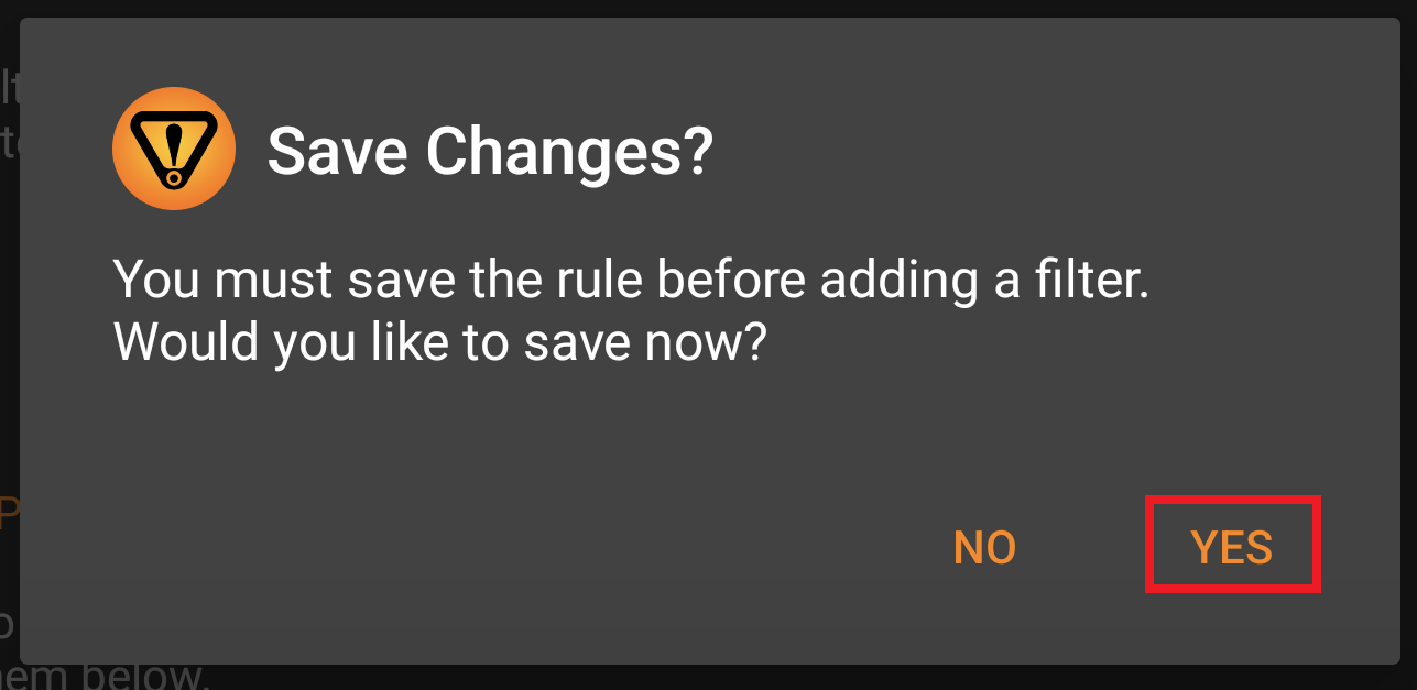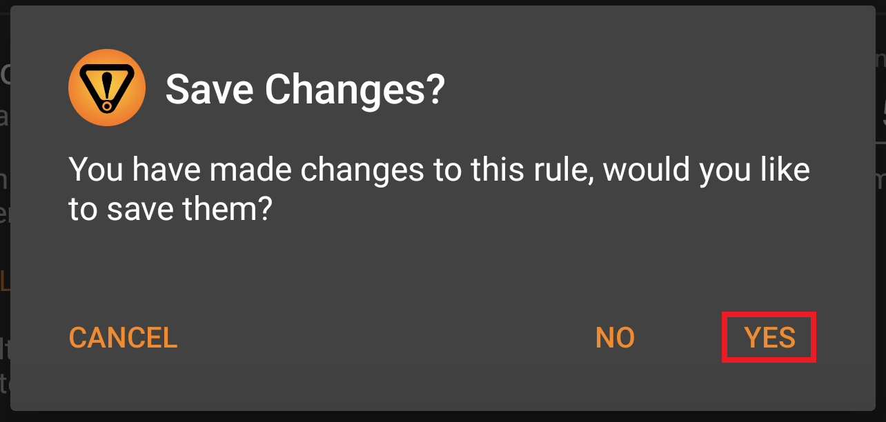 To save changes to your rule, simply hit the back key at the top left of the screen and if there are any changes that need saving, you will be prompted to do so:
