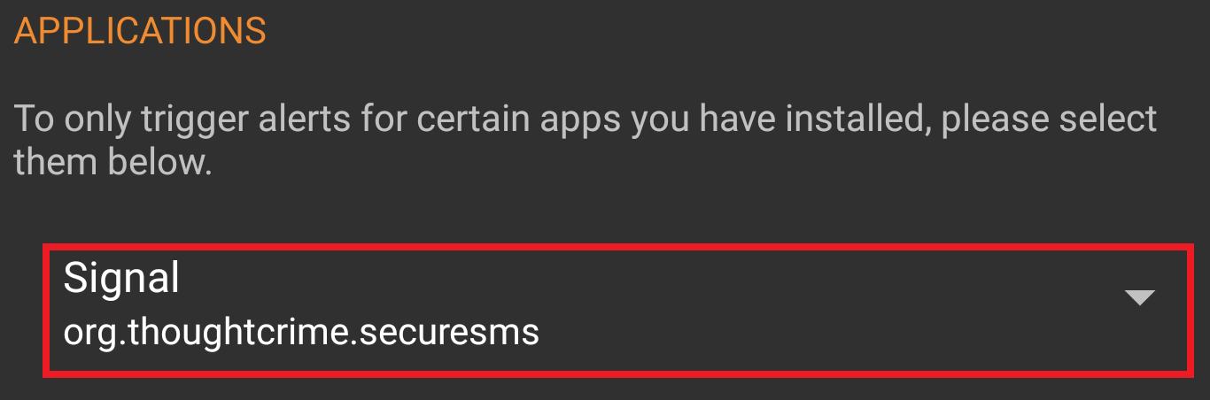 This section allows you to select a specific app to receive notifications from. This again helps reduce the chances of another app setting your alert off accidentally.