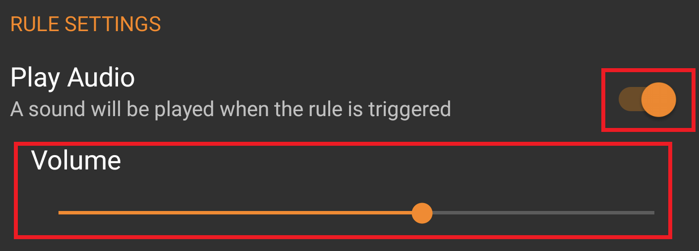 If you want the rule to play audio when it is triggered, turn on the toggle. This will display some further options:
