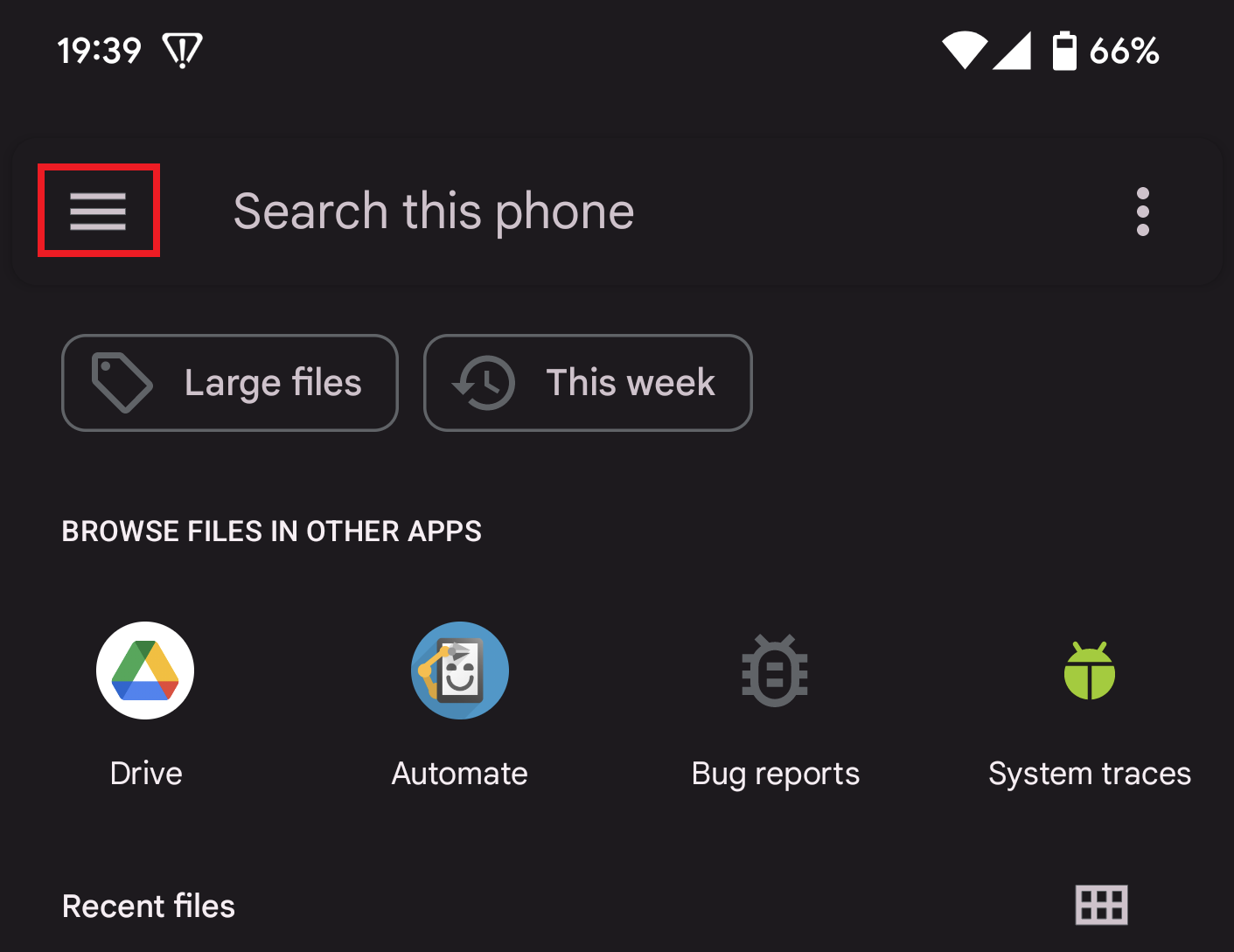 Once allowed, you can select any file (.mp3) from your device storage – click the menu button to view your device storage, highlighted in the red box below (note, this step may vary from device to device):