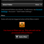 The ability to have multiple filters per rule is now supported. For example, you can filter emails coming from a specific email address, containing a specific word in the subject.